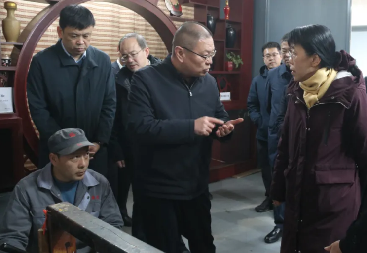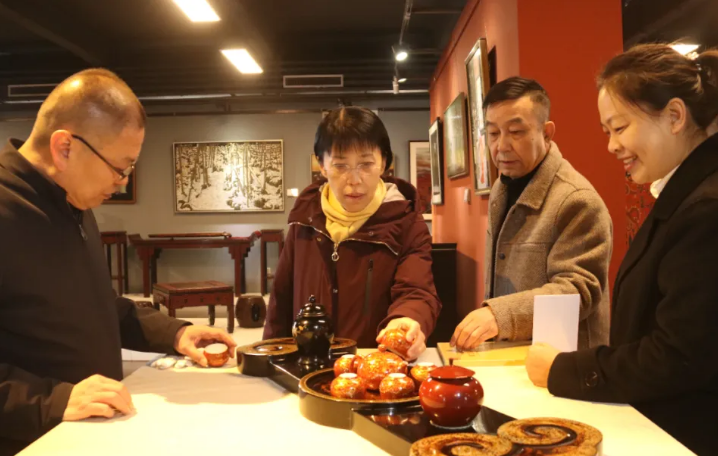 2024年2月27日上午,山西省人民政府黨組成員、副省長趙紅嚴(yán)到平遙縣唐都推光漆器有限公司對中國工藝美術(shù)大師雷天勇工作室的運行情況進(jìn)行深入調(diào)研。晉中市副市長張王杰,平遙縣縣委副書記、縣長馮玉全,平遙縣縣委常委、副縣長王曉剛、平遙煤化集團(tuán)公司黨委副書記常天星等領(lǐng)導(dǎo)參加調(diào)研。