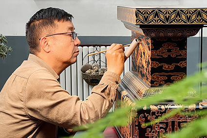 雷天勇熟練掌握了具有地域特色的*********非遺項(xiàng)目平遙推光漆器髹飾技藝,即以天然大漆為原料的描金彩繪、三金三彩、堆鼓罩漆工藝以及融合國(guó)內(nèi)漆藝精華平磨螺鈿,骨石鑲嵌、刻漆雕填。